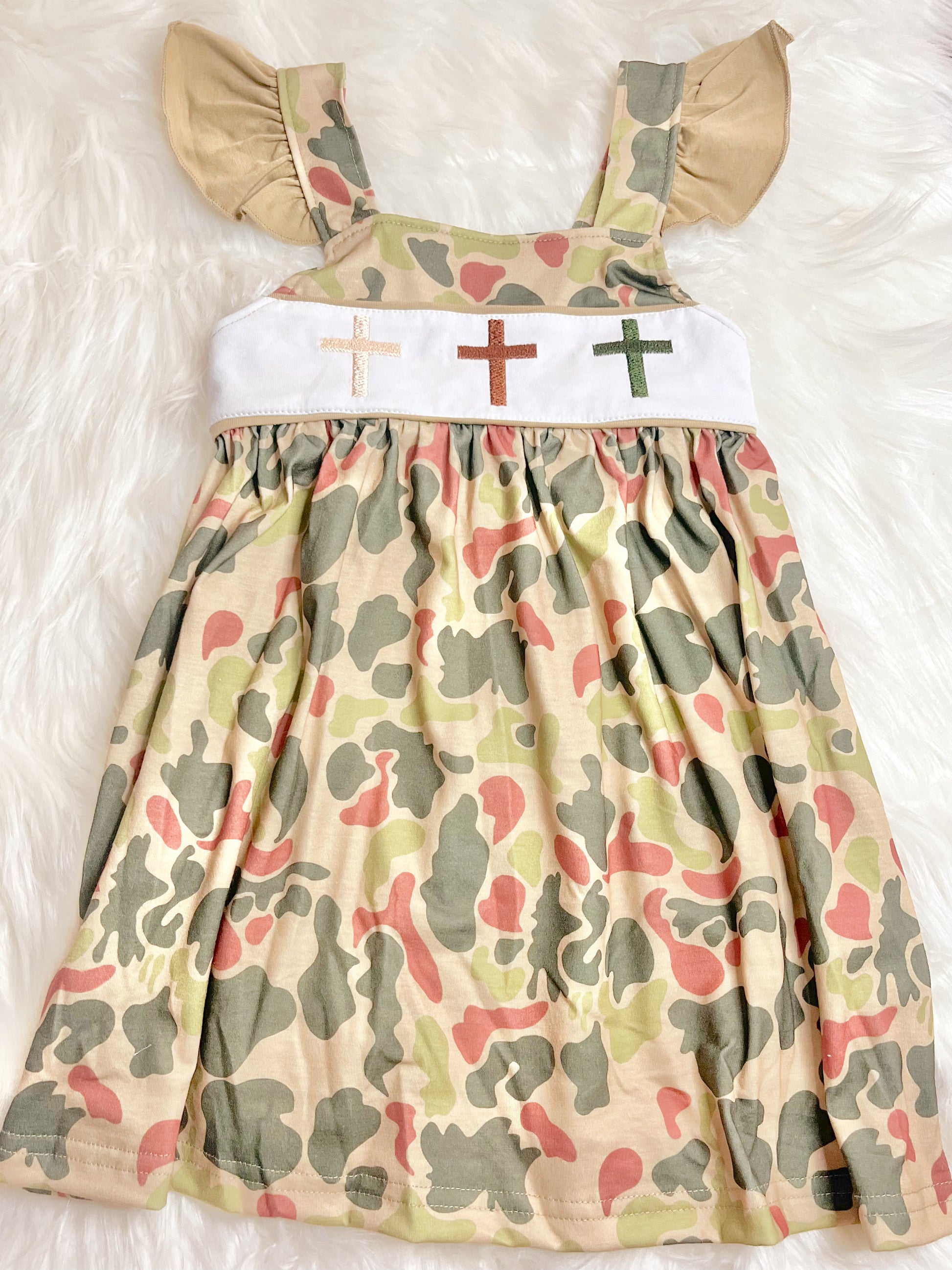 Camo cross embroidery dress girls